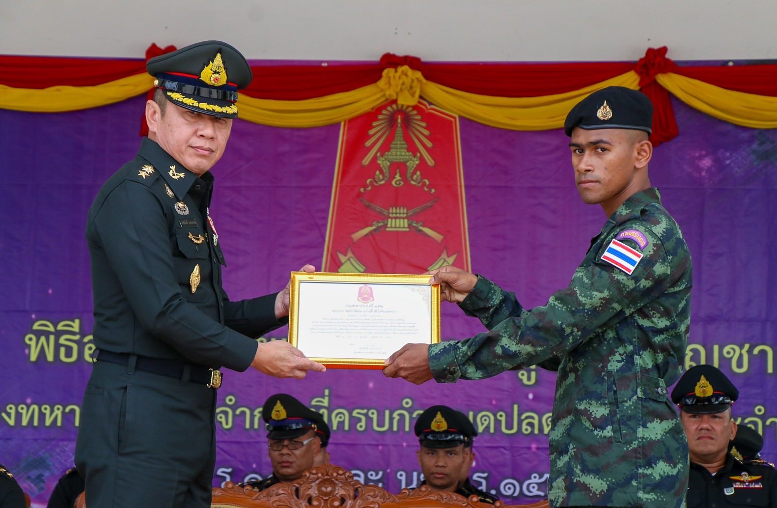 🔳 ในการนี้ ผู้บังคับการกรมทหารราบที่ 152 ได้กล่าวแสดงความยินดีแก่กำลังพลที่ได้รับมอบใบประกาศเกียรติคุณ ซึ่งเป็นสิ่งที่บ่งบอกถึงการอุทิศตนทำงานให้กับหน่วยเป็นไปด้วยความเรียบร้อยในห้วงรับราชการ พิธีในวันนี้ถือเป็นพิธีที่มีเกียรติ เพราะมีการเชิญธงชัยเฉลิมพล ซึ่งเป็นสิ่ง ศักดิ์สิทธิ์สูงสุดของทหารเป็นเกียรติยศของหน่วยทหาร และไม่เพียงแต่เป็นเกียรติยศของหน่วยทหารเท่านั้นหากแต่ยังเป็นเครื่องหมายแทนองค์พระมหากษัตริย์ผู้ทรงเป็นจอมทัพที่เสมือนหนึ่งเสด็จพระราชดำเนินมาประทับเป็นหลักชัยอยู่ท่ามกลางเหล่าทหารทั้งปวง และพิธีวันนี้ถือเป็นพิธีที่สำคัญในการปลดประจำการก่อนกลับสู่ภูมิลำเนา ตลอดห้วงรับราชการเป็นทหารกองประจำการ ถือว่าเป็นการทำหน้าที่ของชายไทยได้สมบูรณ์แบบ และพิสูจน์ตนเองแล้วว่า มีความเป็นนักสู้ อย่างแท้จริง นับเป็นความภาคภูมิใจของผู้บังคับบัญชาทุกระดับชั้น ปัจจุบันหน่วยเราได้รับภารกิจสำคัญยิ่ง คือ การปฏิบัติงานในพื้นที่ 3 จังหวัดชายแดนภาคใต้ อันเป็นภาระที่ยิ่งใหญ่ มีเกียรติ เพื่อนเราบางคน ต้องสละชีวิต เพื่อปกป้องผืนปฐพีนี้ไว้ นับเป็นวีรบุรุษของชาติอย่างแท้จริง ขอให้ท่านรำลึกถึงภาระหน้าที่ดูแลช่วยเหลือพี่น้องประชาชน ตลอดจนนำความรู้ ประสบการณ์ที่ได้รับ ปรับใช้ในการดำรงชีวิต ส่วนตนและส่วนรวม เป็นพลเมืองที่ดีของประเทศชาติ