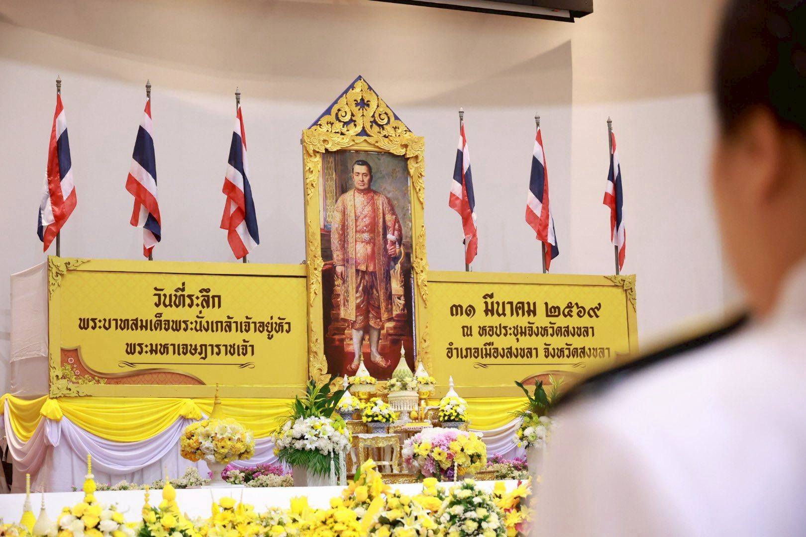 มรภ.สงขลา ร่วมพิธีวางพานพุ่มดอกไม้ถวายราชสักการะ เนื่องในวันที่ระลึกพระบาทสมเด็จพระนั่งเกล้าเจ้าอยู่หัว พระมหาเจษฎาราชเจ้า ประจำปี 2569 แสดงความจงรักภักดีและน้อมสำนึกในพระมหากรุณาธิคุณที่ทรงมีต่อพสกนิกรชาวไทย . วันที่ 31 มีนาคม 2569 ผศ.พิเชษฐ์ จันทวี อธิการบดีมหาวิทยาลัยราชภัฏสงขลา (มรภ.สงขลา) มอบหมายให้ ผศ.ดร.กันตภณ มะหาหมัด รองอธิการบดีฝ่ายบริหารและพัฒนาหน่วยงาน เป็นตัวแทนของมหาวิทยาลัยร่วมวางพานพุ่มดอกไม้ถวายราชสักการะ เนื่องใน “วันที่ระลึกพระบาทสมเด็จพระนั่งเกล้าเจ้าอยู่หัว พระมหาเจษฎาราชเจ้า” ประจำปี 2569 ณ หอประชุมจังหวัดสงขลา อำเภอเมืองสงขลา จังหวัดสงขลา โดยมี นายรัฐศาสตร์ ชิดชู ผู้ว่าราชการจังหวัดสงขลา เป็นประธานในพิธี . ทั้งนี้ คณะรัฐมนตรีได้มีมติเมื่อวันที่ 17 กุมภาพันธ์ 2541 กำหนดให้วันที่ 31 มีนาคม ของทุกปี เป็นวันที่ระลึกพระบาทสมเด็จพระนั่งเกล้าเจ้าอยู่หัว พระมหาเจษฎาราชเจ้า จังหวัดสงขลาจึงได้จัดงานรัฐพิธีถวายเครื่องราชสักการะ โดยมีข้าราชการชั้นผู้ใหญ่ ผู้แทนศาล ทหาร ตำรวจ หัวหน้าส่วนราชการ นายอำเภอ ตลอดจนหน่วยงานทุกภาคส่วน เข้าร่วมพิธีโดยพร้อมเพรียงกัน เพื่อแสดงความจงรักภักดีและน้อมสำนึกในพระมหากรุณาธิคุณอันหาที่สุดมิได้ของพระบาทสมเด็จพระนั่งเกล้าเจ้าอยู่หัว พระมหาเจษฎาราชเจ้า ที่ทรงมีต่อพสกนิกรชาวไทย . ข้อมูล/ภาพ งานสื่อสารองค์กร และ เพจสำนักงานประชาสัมพันธ์จังหวัดสงขลา