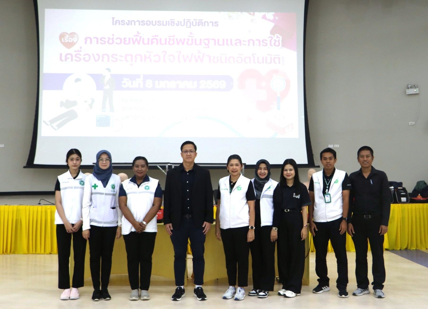 กองพัฒนานักศึกษา มรภ.สงขลา จัดอบรมการช่วยฟื้นคืนชีพขั้นพื้นฐานและการใช้เครื่องกระตุกหัวใจไฟฟ้าชนิดอัตโนมัติ เทียบเชิญทีมวิทยากรโรงพยาบาลสงขลา ถ่ายทอดทักษะด้านการปฐมพยาบาลและช่วยเหลือชีวิตผู้ที่มีภาวะหยุดหายใจ