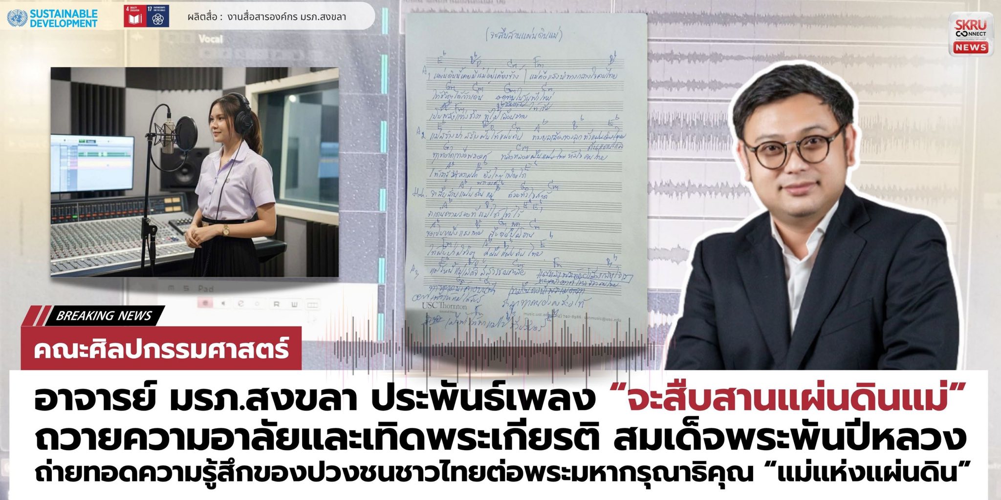 อาจารย์คณะศิลปกรรมฯ มรภ.สงขลา แต่งบทเพลง “จะสืบสานแผ่นดินแม่” ถวายความอาลัยและเทิดพระเกียรติแด่สมเด็จพระนางเจ้าสิริกิติ์ พระบรมราชินีนาถ พระบรมราชชนนีพันปีหลวง ถ่ายทอดความรู้สึกปวงชนชาวไทยต่อพระมหากรุณาธิคุณ “แม่แห่งแผ่นดิน”