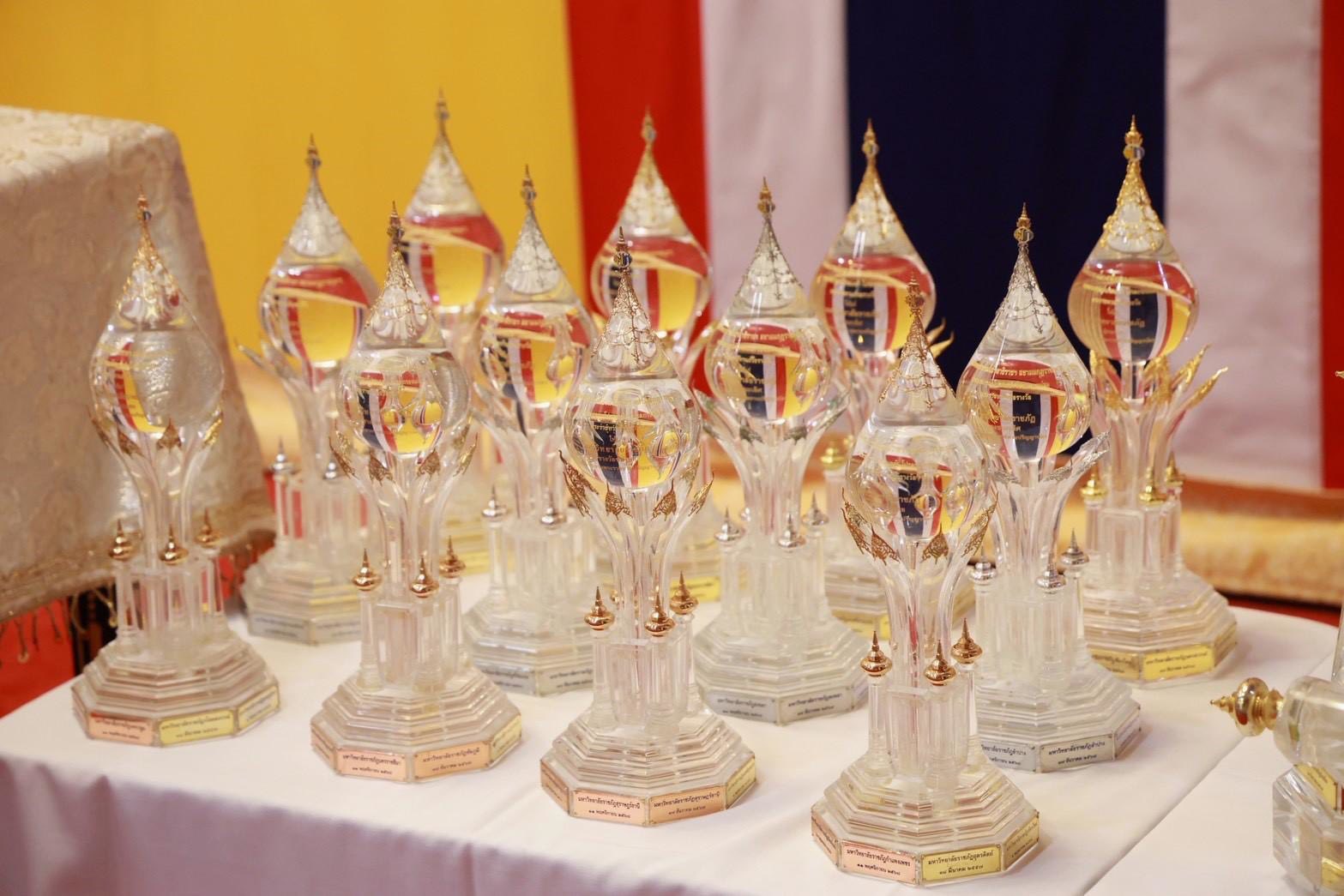 มรภ.สงขลา เข้ารับถ้วยรางวัลพระราชทาน รางวัลที่ 2 รางวัลความถูกต้องเรียบร้อย/การอ่านจังหวะสม่ำเสมอ กลุ่มมหาวิทยาลัยราชภัฏเขตภาคใต้ ในการแข่งขันการเข้ารับพระราชทานปริญญาบัตรมหาวิทยาลัยราชภัฏทั่วประเทศ