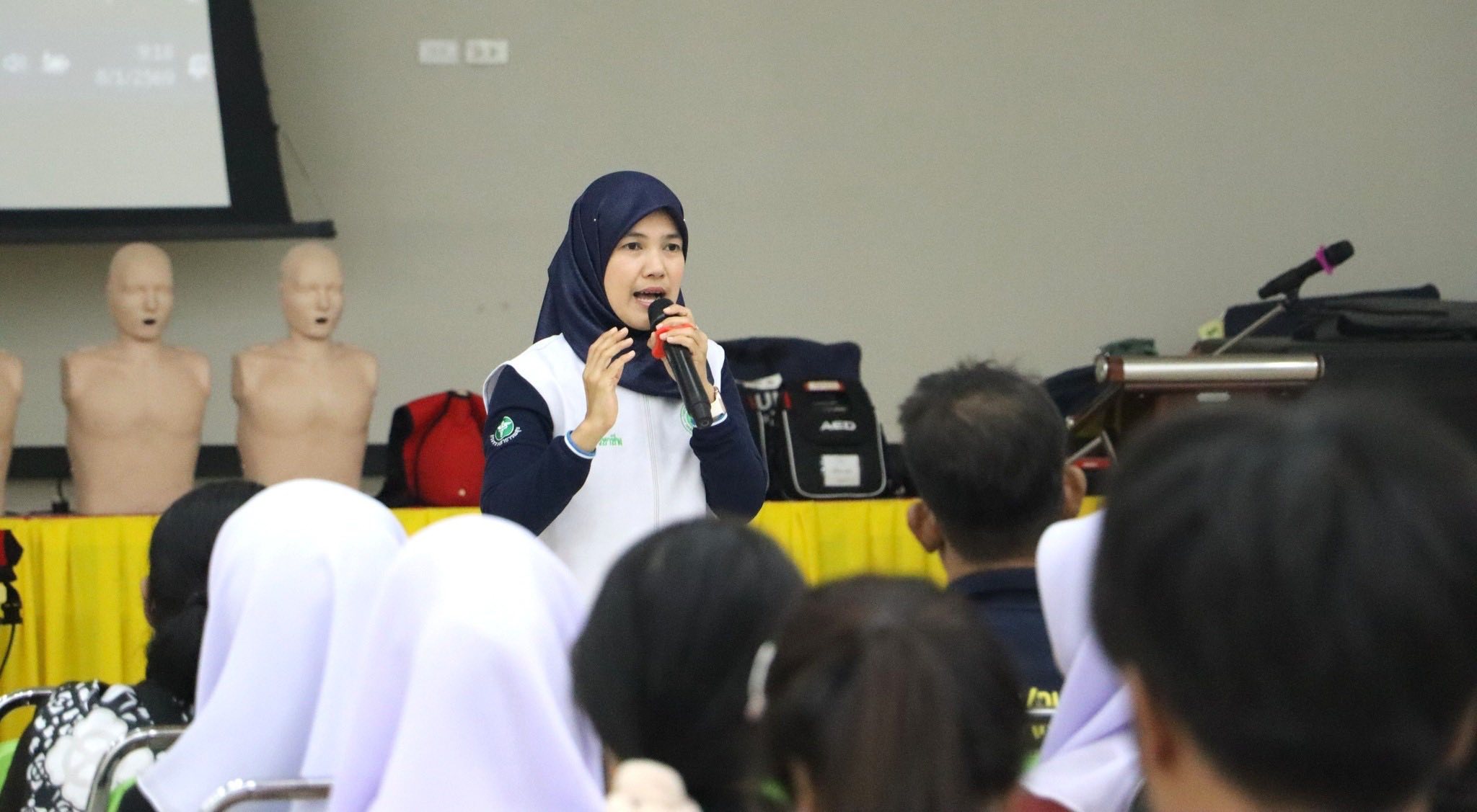 ทั้งนี้ การช่วยฟื้นคืนชีพขั้นพื้นฐานและการใช้เครื่องกระตุกหัวใจไฟฟ้าชนิดอัตโนมัติ ถือเป็นทักษะที่มีความสำคัญอย่างยิ่งต่อการช่วยเหลือผู้ที่อยู่ในภาวะฉุกเฉินทางการแพทย์ โดยเฉพาะภาวะหัวใจหยุดเต้นเฉียบพลัน ซึ่งหากได้รับการช่วยเหลืออย่างถูกต้องและทันท่วงที จะสามารถเพิ่มโอกาสในการรอดชีวิตและลดความสูญเสียได้อย่างมาก ซึ่งต้องขอขอบคุณคณะวิทยากรจากโรงพยาบาลสงขลา ที่สละเวลาและมาถ่ายทอดความรู้ รวมถึงคณะผู้จัดงานทุกฝ่ายที่ร่วมกันจัดโครงการนีให้สำเร็จลุล่วงไปด้วยดี