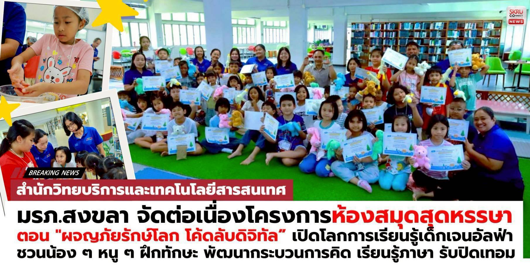 สำนักวิทยบริการและเทคโนโลยีสารสนเทศ มรภ.สงขลา จัดโครงการห้องสมุดสุดหรรษา ตอน "ผจญภัยรักษ์โลก โค้ดลับดิจิทัล” ฝึกทักษะ พัฒนากระบวนการคิด เรียนรู้ภาษา พร้อมรู้จักเพื่อนใหม่ช่วงปิดเทอม