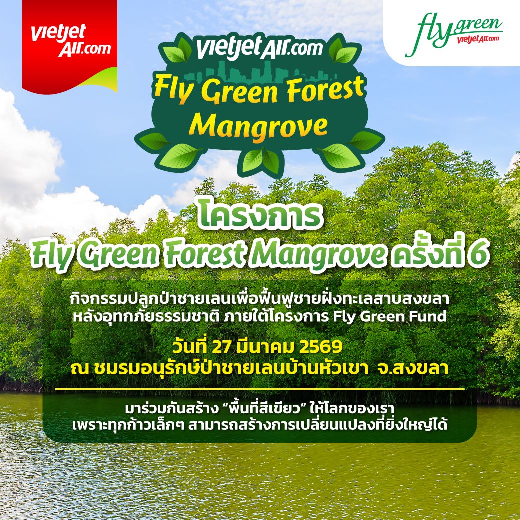 เวียตเจ็ทไทยแลนด์ เดินหน้ากิจกรรม Fly Green Forest Mangrove ครั้งที่ 6 และ Fly Green – Garbage Hunter ครั้งที่ 20 ผนึกกำลังภาครัฐ เอกชน สถาบันการศึกษา และภาคประชาชน ฟื้นฟูชายฝั่งทะเลสาบสงขลา