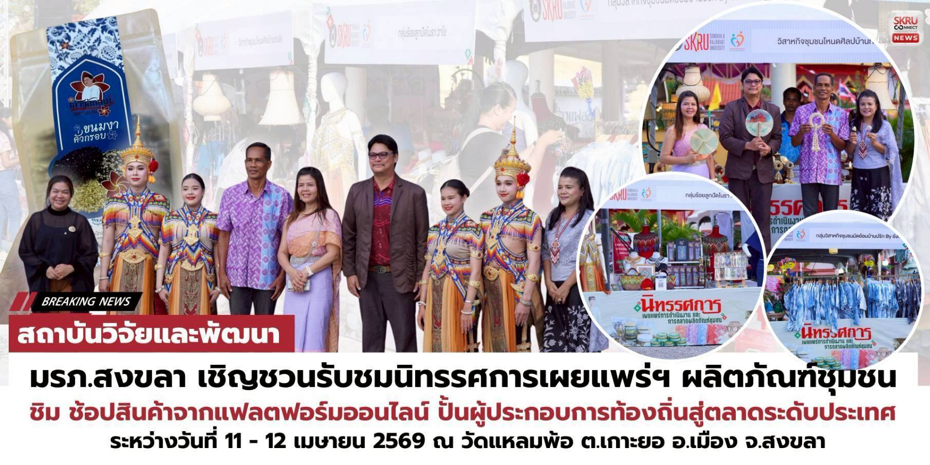 สถาบันวิจัยและพัฒนา มรภ.สงขลา จัดงาน “นิทรรศการเผยแพร่การดำเนินงานและการตลาดผลิตภัณฑ์ชุมชน” ภายใต้โครงการยกระดับมาตรฐานผลิตภัณฑ์ชุมชน (ด้วยหลัก BCG MODEL) วันที่ 11-12 เม.ย. 69 ณ วัดแหลมพ้อ ต.เกาะยอ คัดสรรหลากผลิตภัณฑ์ที่โดดเด่นจากชุมชนแฟลตฟอร์มออนไลน์มาให้ชิม ช้อป พร้อมสร้างเครือข่ายผู้ประกอบการในท้องถิ่นขยายสู่ตลาดระดับประเทศ