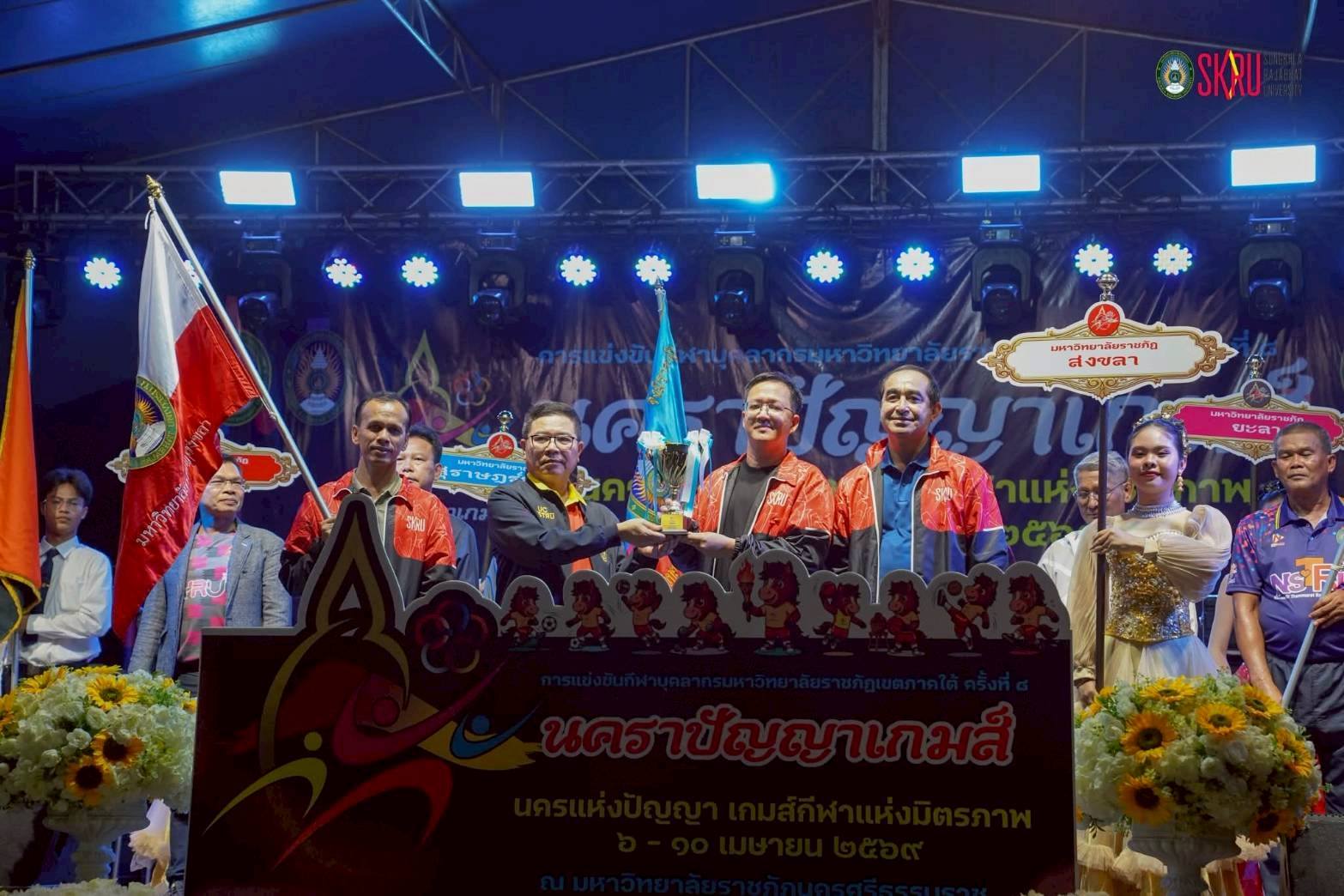 มรภ.สงขลา รับธงเป็นเจ้าภาพจัดการแข่งขันกีฬาบุคลากรราชภัฏภาคใต้ ครั้งที่ 9 ปี 2570 สืบสานเจตนารมณ์สร้างความรัก สามัคคี กระชับสัมพันธ์อันดีน้องพี่ 5 ราชภัฏภาคใต้