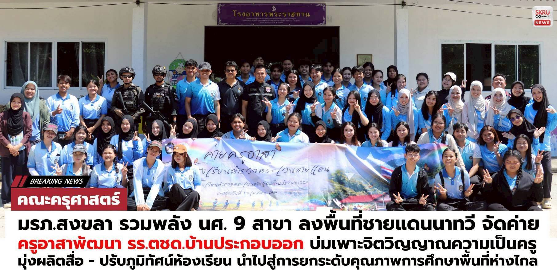 คณะครุศาสตร์ มรภ.สงขลา รวมพลังนักศึกษา 9 สาขาวิชา ลงพื้นที่ อ.นาทวี จัดกิจกรรมค่าย “ครูอาสา พัฒนาโรงเรียน ตชด.บ้านประกอบออก” ผลิตสื่อการเรียนการสอน พร้อมปรับภูมิทัศน์ห้องเรียน เดินหน้ายกระดับการศึกษาในพื้นที่ห่างไกล
